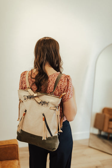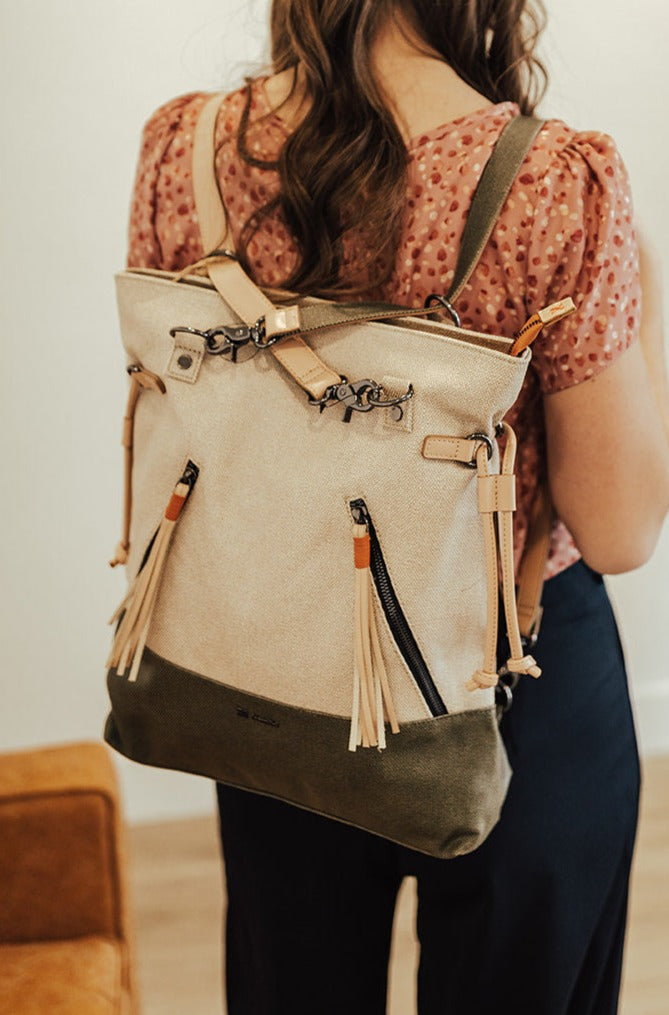 Clever, functional, and versatile; this luxe backpack converts into a tote or backpack with one swift motion. With style in focus, this functional bag will easily fit your books, laptop, and other essentials. It's no surprise the Tempest is one of our most popular bags its hand-painted canvas grows more alluring with time and use.