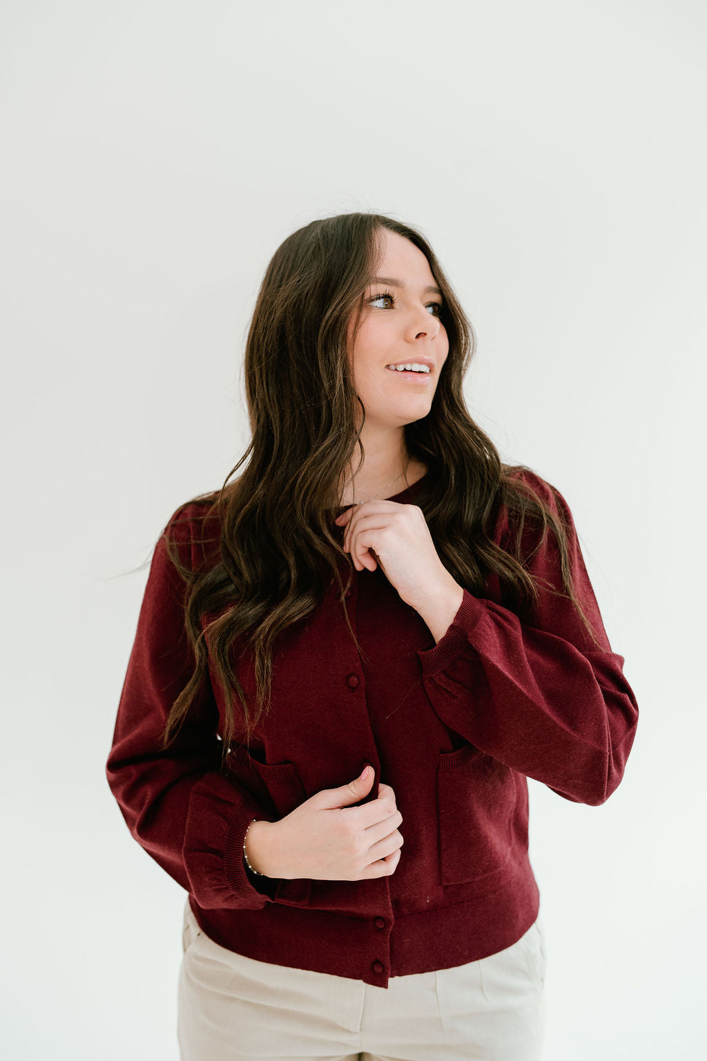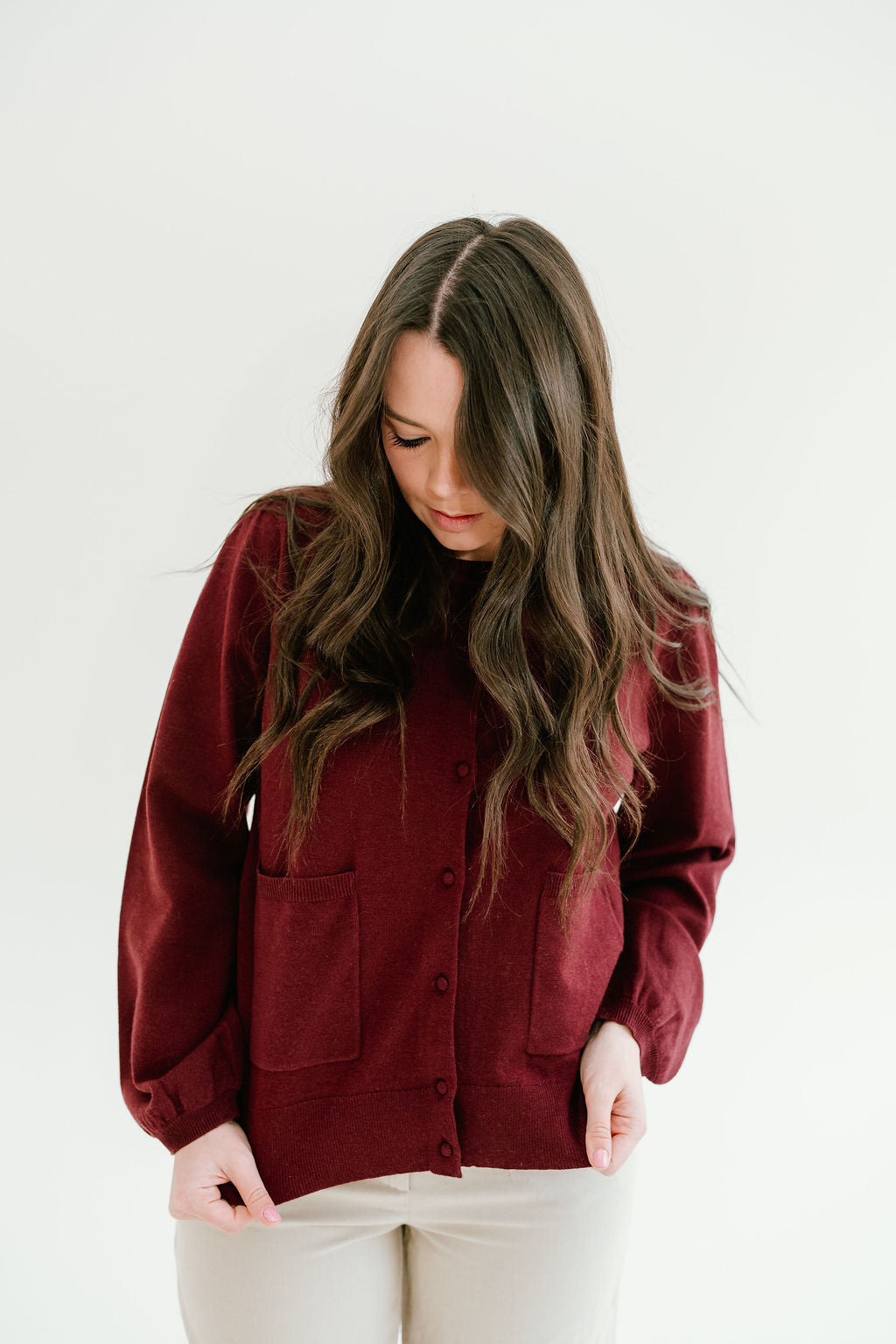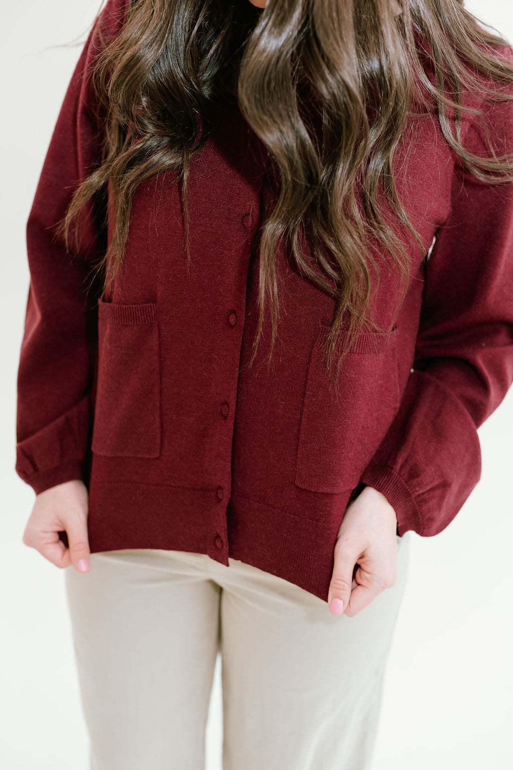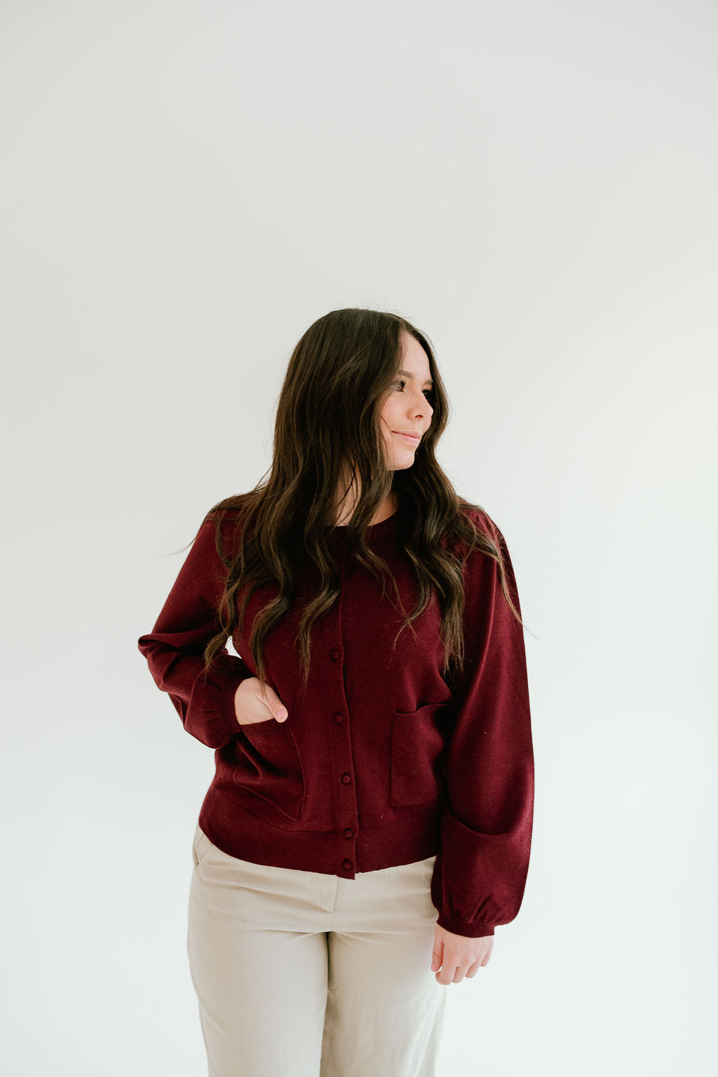 So cute to style unbottoned or buttoned with the top button! Very warm but classy. Super cute with the Ava Jane trousers or the ivory/brown Mary Skirt! Wish there were more colors but love it!