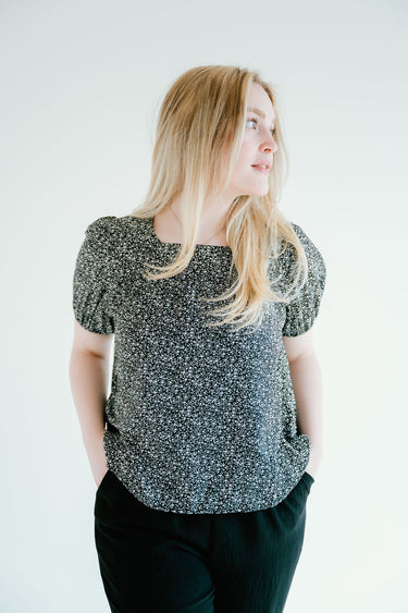 The Brooklyn Top is the perfect balance of feminine charm and relaxed elegance. Designed with a soft square neckline, delicate puff sleeves, and a breezy, flowy bodice, this top offers both comfort and style. Whether you're dressing it up or keeping it casual, its versatile silhouette makes it a must-have for any wardrobe. Pair it with the Lilliana Trouser or Ava Jane Trouser for a polished look, and complete the outfit with Dot Darcy Mary Janes for an effortlessly classic touch.