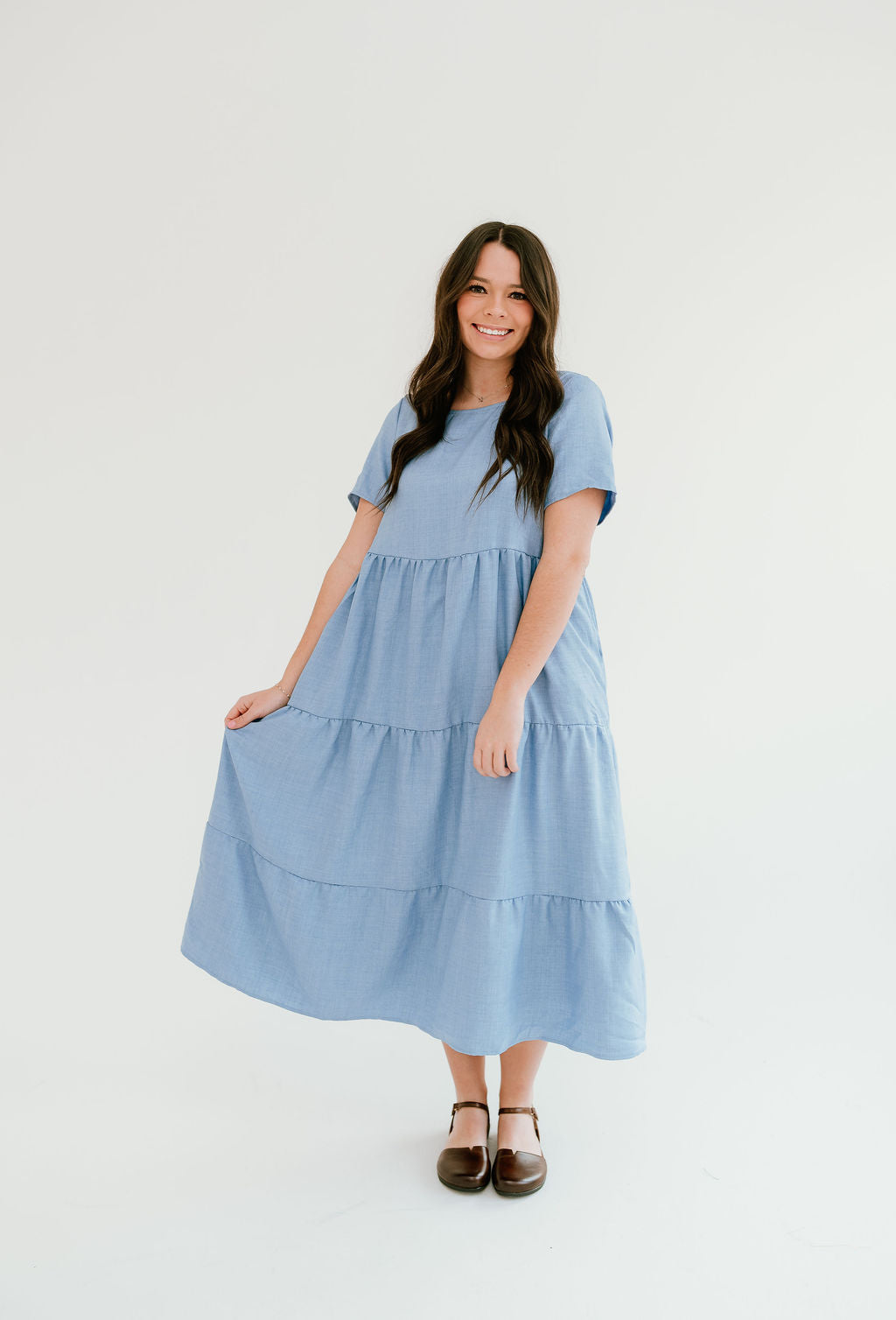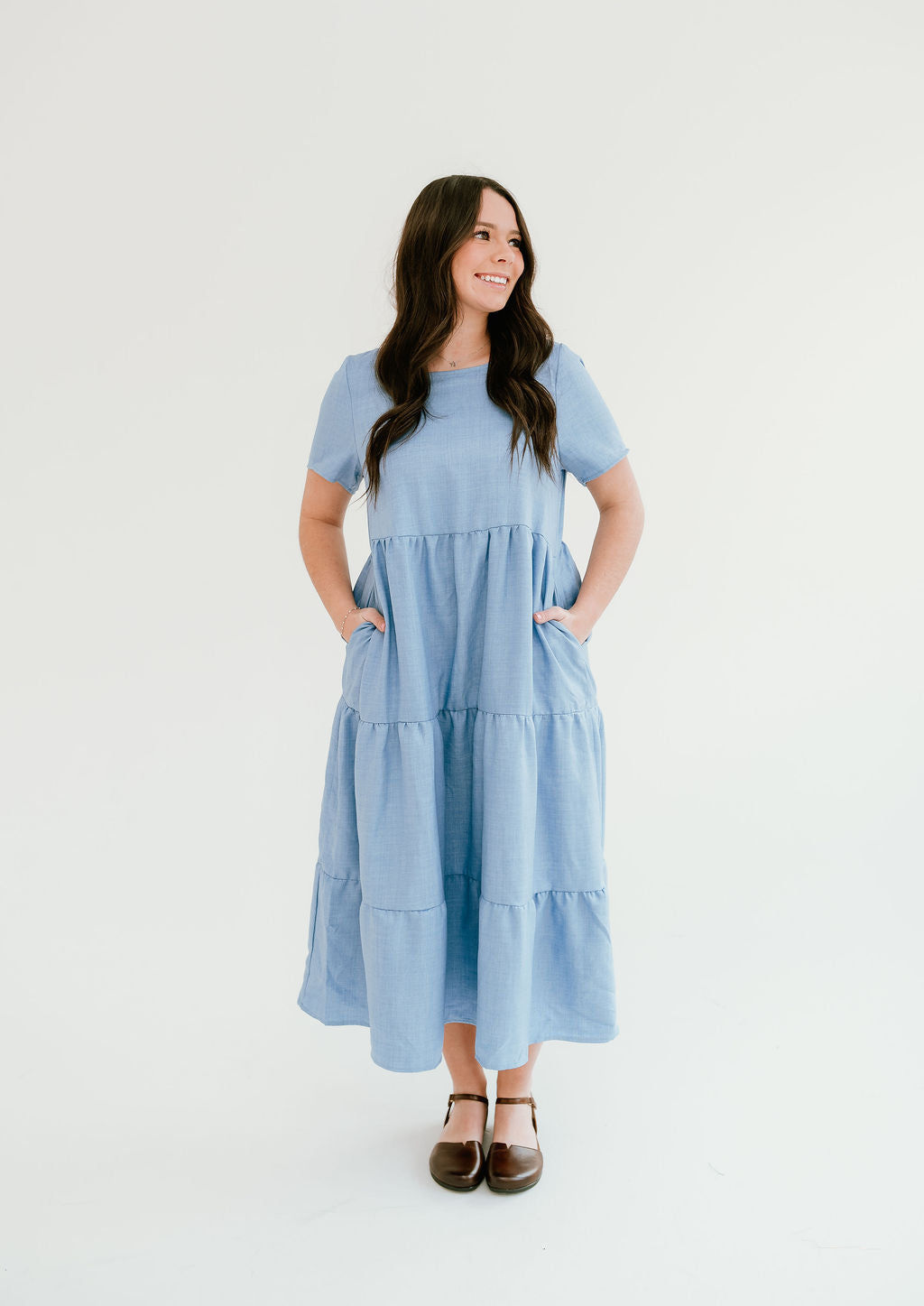 The Camilla Dress is your versatile go-to for polished style and comfort in any season. Designed with a flattering flowy silhouette and thoughtful details, this dress easily transitions from warm summer days to cooler weather layering.