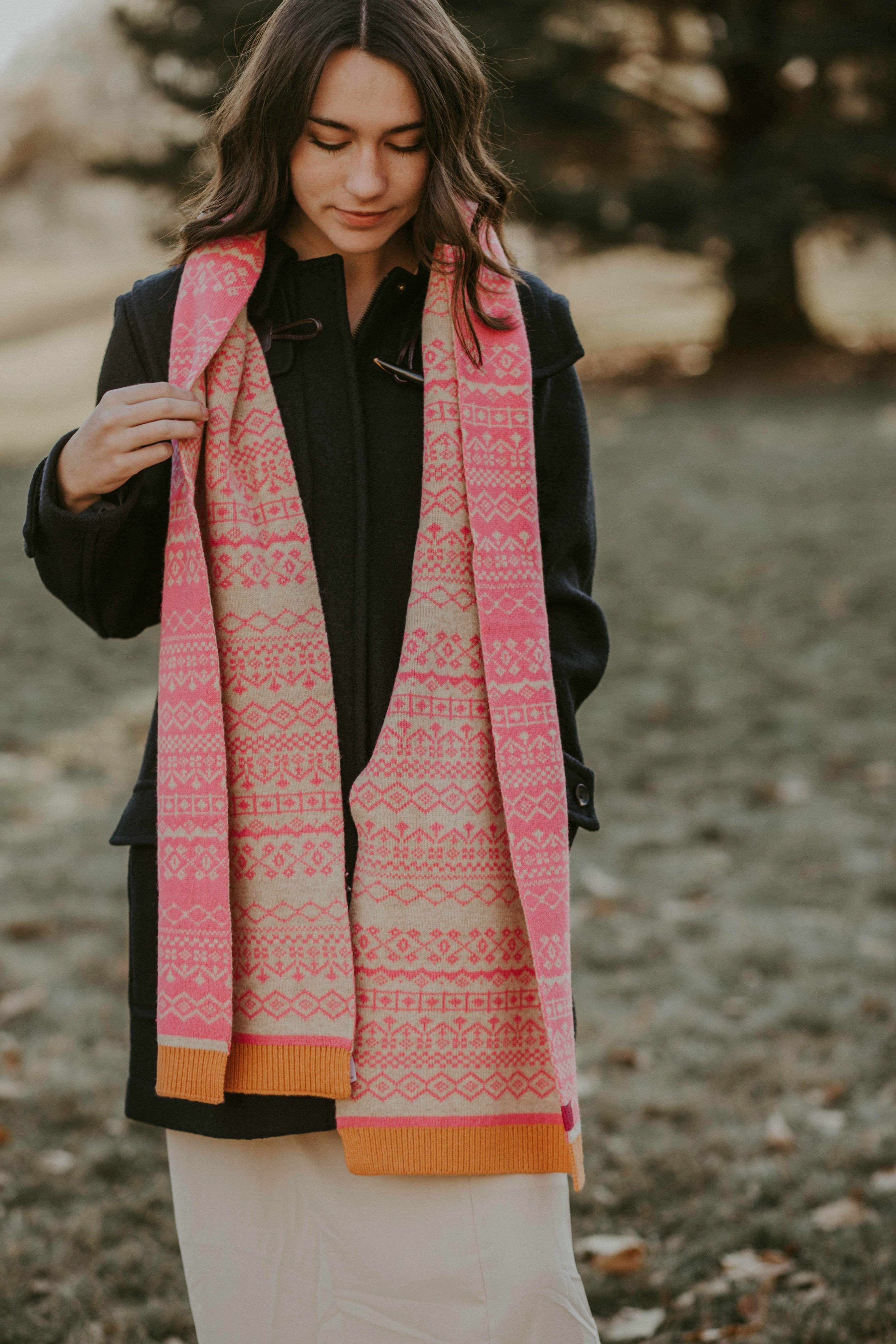 Elsa Fairisle Scarf Deep Fuchsia