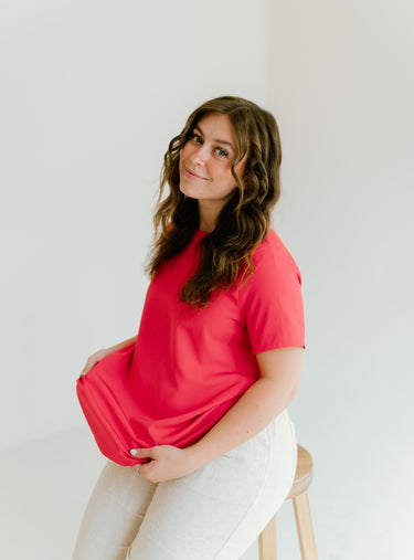 The Kayla Top is the PERFECT basic! It comes in so many colors and will be an everyday go to! Pairs perfectly with any skirt or pants! Or even under a cute jumper!